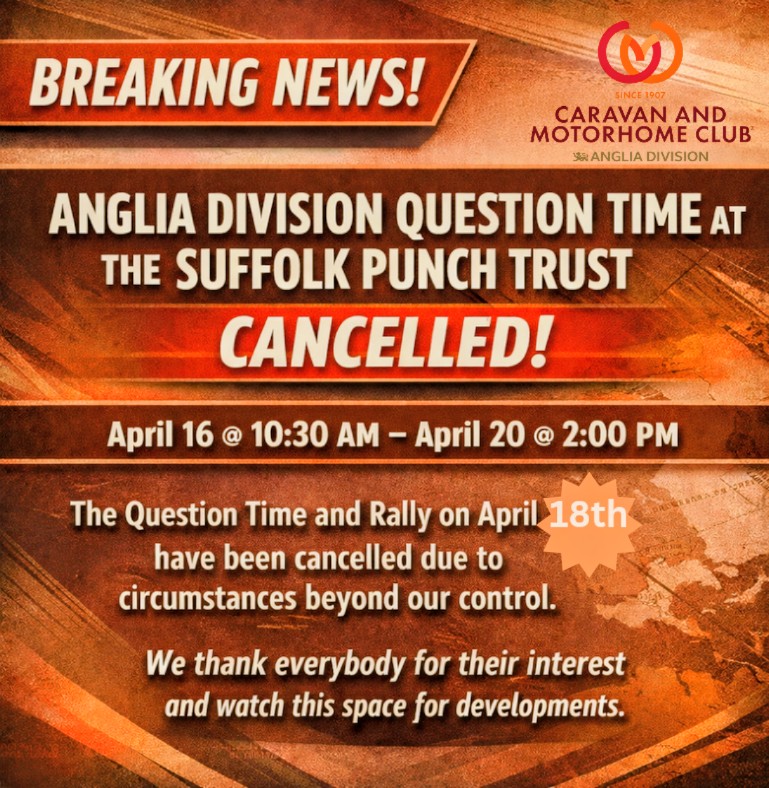 We regret to inform you that Anglia Division Question Time at the Suffolk Punch Trust in April has been cancelled due to unforeseen circumstances.